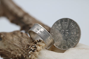 Diese besonderen Creolen entstehen aus dem Rand einer originalen 50-Schilling-Silbermünze. Die historische Prägung „FUENFZIG SCHILLING“ bleibt dabei sichtbar – ein dezentes, aber kraftvolles Detail mit symbolischem Wert.